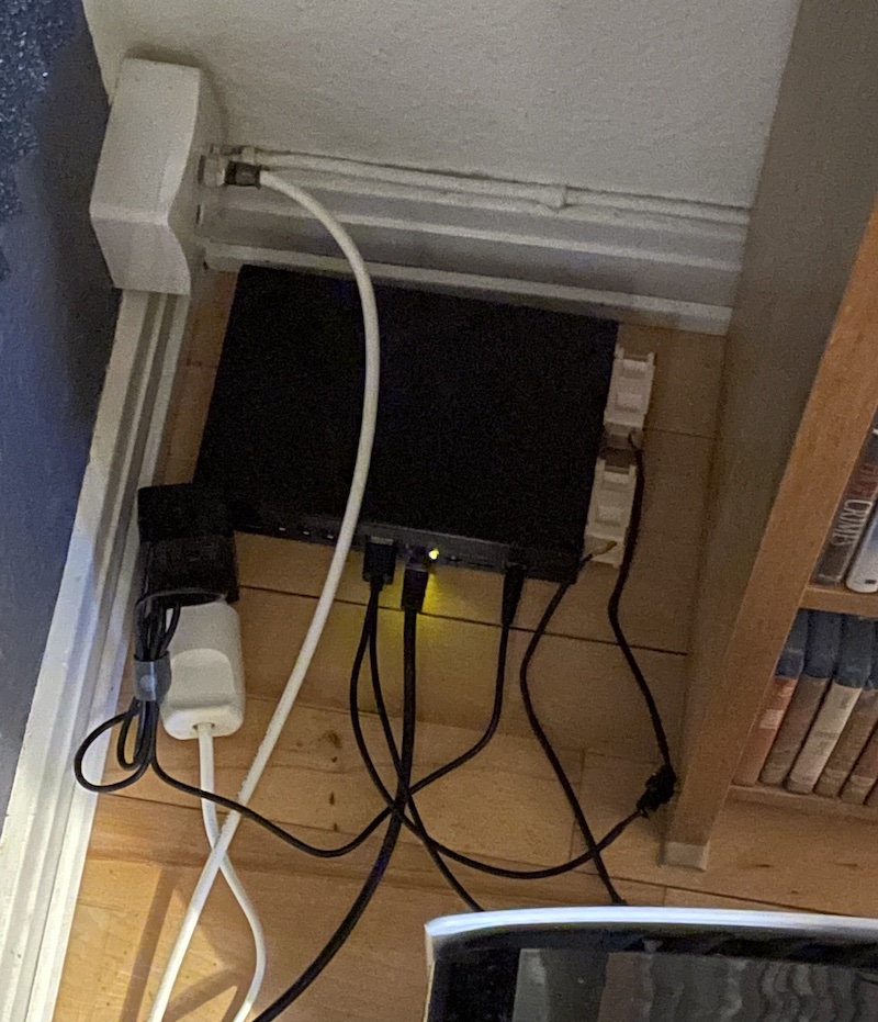 I nat (i morges? :p) fandt jeg dog ud af at PS5'erens udstødning lige hæver temperaturen på hukommelsespindene med op til ti grader! Det burde jo stadig være langt fra farezonen, men det overraskede mig en del at det skulle gøre så stor en forskel. Jeg har flyttet varmeapparatet lidt længere væk og ændret vinklen i forhold til på billedet nedenunder her, så forhåbentlig gør det en lille forskel.